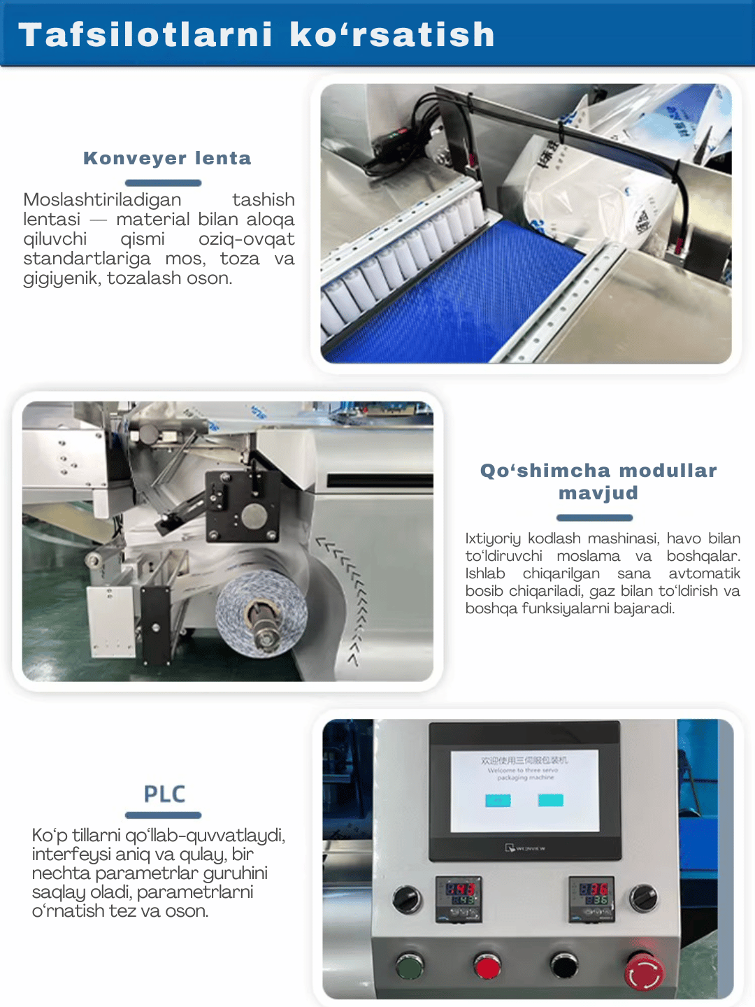 US-UX60 is an industrial horizontal flow pack machine with a film width of up to 600 mm. It’s built to pack large biscuit sets, chocolate bars, multi-layer sandwiches, thick wafers, and other heavy or bulky products 💨 quickly and precisely.