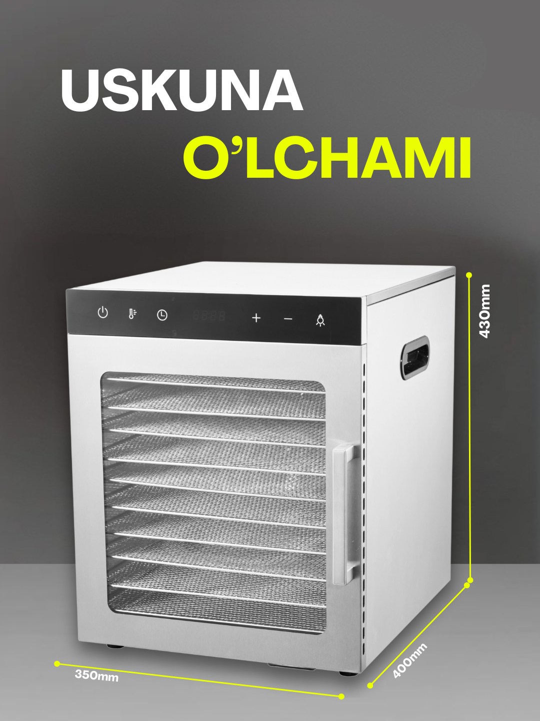 Uskunalar.uz US-10 degidratori bilan oshxonangizni yanada samarali va ijodiy qiling! 🚀 Hoziroq sotib oling va sog‘lom taomlarni oson tayyorlang! 🛒