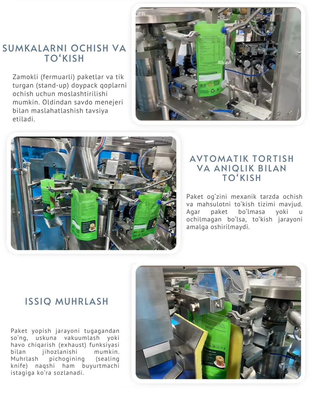 ✅ Doypack va boshqa tayyor paketlarga moslashuvchan